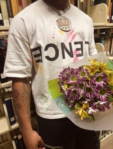 Teran, an accounting major from Houston, describes his style as clean, bold, and creative. He says his inspiration comes from creators like Poppy Q and Tyler, the Creator, blending trendy and experimental looks that sta[]nd out in a crowd. “Drip is my lifestyle,” Aiden explained. “Every time I wake up, I think about dressing–clothes, shoes, statement pieces. It’s my second happiness in life.”